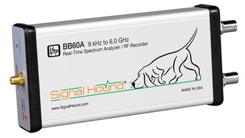 The Signal Hound BB60A Real-Time Spectrum Analyzer and RF Recorder is the newest addition to the Signal Hound family of products. Utilizing a USB 3.0 SuperSpeed link, the BB60A streams 140 MB/sec of digitized RF data to your PC, 14-bit samples at 80 million samples per second, with 20 MHz of useable bandwidth.