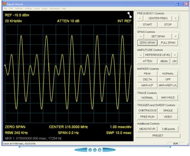 Please note: The Signal Hound is not intended for use with spread spectrum signals. If your modulated signal is wider than 20 MHz, amplitude accuracy is not guaranteed. Frequency-hopping and pulsed signal measurements may require special settings.
